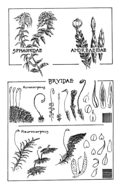 two families; only two species in genus ANDREAEA are in our area. These are boreal and alpine rock mosses.
